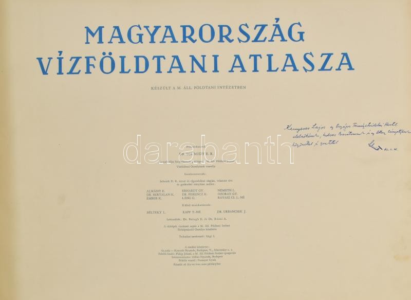 Magyarország vízföldtani atlasza. Készült a Magyar Állami Földtani Intézetben. Szerk. Schmidt Eligius Róbert. Bp. 1961. Kossuth. (M. Áll. Földtani Intézet.) 73 l. + 29 l. (német nyelvű összefoglaló). Haránt alakú folio. Kiadói félvászon-kötésben.
