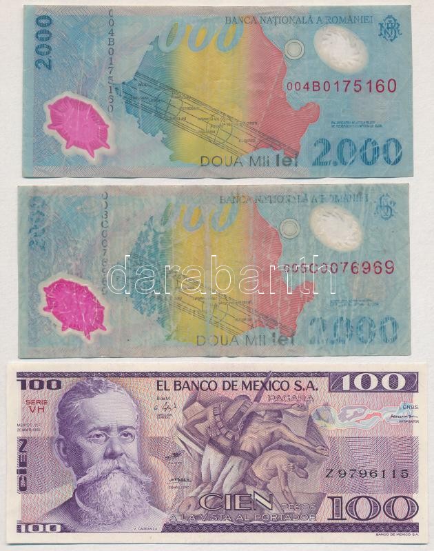 Leírás: Vegyes: Görögország 1944. 200Dr + Mexikó 1982. 100P + Német Birodalom 1917. 5M + Olaszország 1969. 1000L + Románia 1999. 2000L (2x) T:I-III