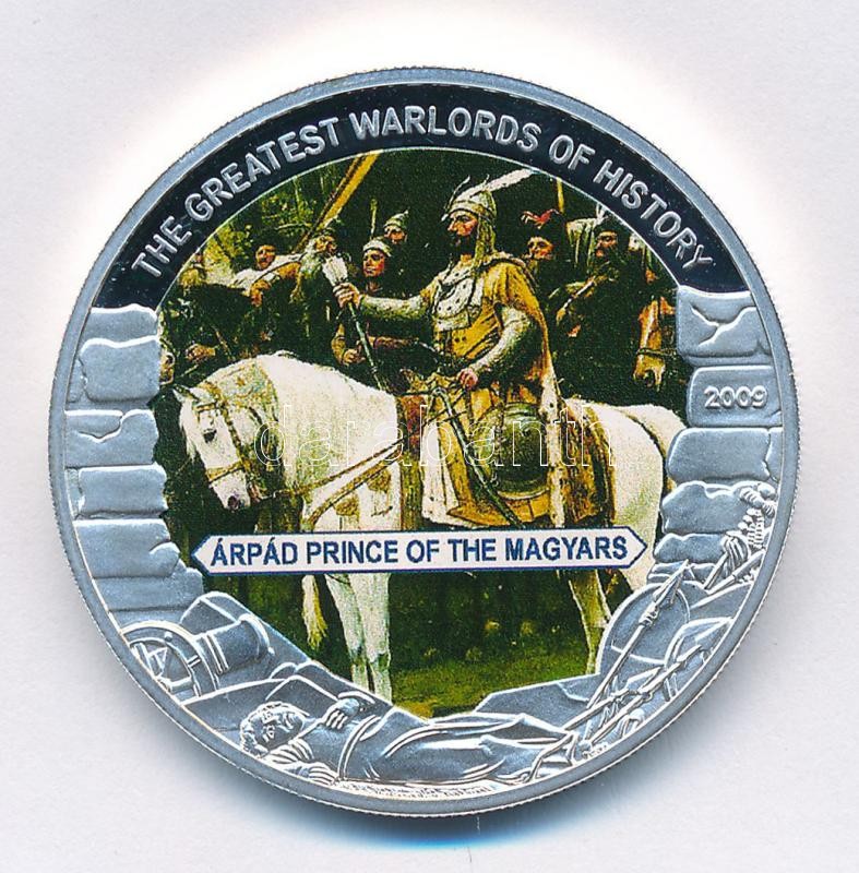 Libéria 2009. 5$ ezüstözött Cu "A történelem legnagyobb hadurai - Árpád a Magyarok Fejedelme" részben multicolor festéssel T:PP