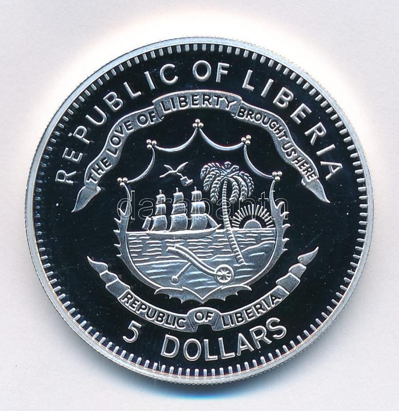 Liberia 2009. 5 Dollars silver plated Cu "The Greatest Warlords of History - Árpád Prince of the Magyars" with partial multicolor picture C:PP