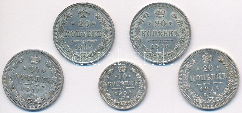 Leírás: Orosz Birodalom 1909. 10k Ag + 1911-1916. 20k Ag (4xklf) T:1--2-