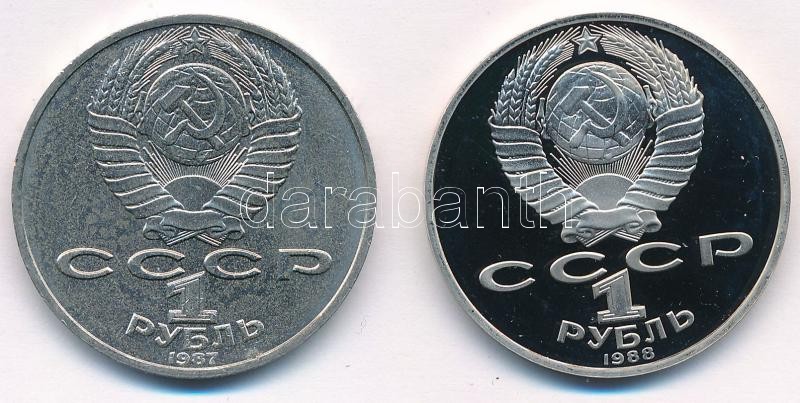 Leírás: Szovjetunió 1987. 1R Cu-Ni "Konsztantyin Ciolkovszkij születésének 130. évfordulója" + 1988. 1R Cu-Ni "Lev Tolsztoj születésének 160. évfordulója" T:2, 1- (PP)