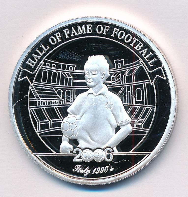 Uganda 2006. 2000Sh Ag "A labdarúgás halhatatlanjainak csarnoka - Olaszország, 1990-es évek" bizonytalan ezüsttartalmú! T:1 (eredetileg PP) Uganda 2006. 2000 Shillings Ag "The Hall of Fame of Football - Italy, 1990's" uncertain silver content C:UNC (originally PP)