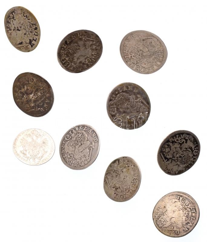 Vegyes 10db-os osztrák és bajor Ag érme tétel, 5-15kr névértékek, mind gombbá alakítva T:3 patina