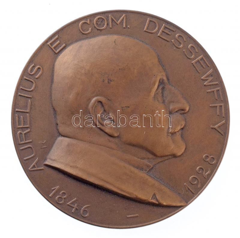 Ligeti Miklós (1871-1944) ~1928. "Dessewffy Aurél" Br emlékérem. "AURELIUS E COM. DESSEWFFY 1846-1928 / IN MEMORIAM JUDICIUS CURIAE AURELII E COM. DESSEWFFY DE ARCA REI AGRARIAE IN HUNGARIA MVTVIS PROMOVENDAE PRAESIDIS PER XXXXIIII ANNOS OPTIME MERITI" (95,90g/60mm) T:2 / Hungary ~1928. "Aurél Dessewffy" Br commemorative medallion. Sign.: Miklós Ligeti (95,90g/60mm) C:XF