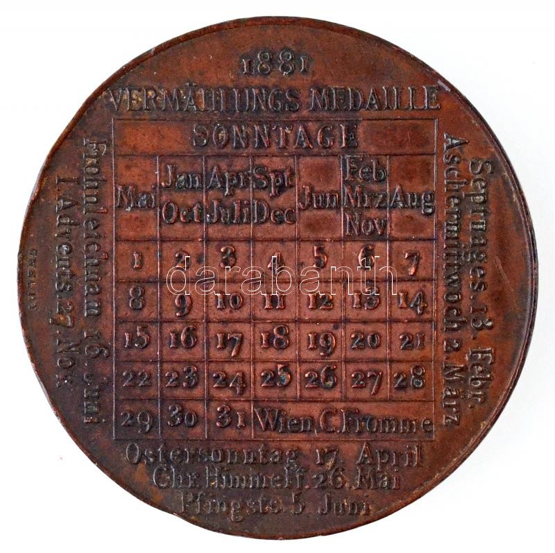Osztrák-Magyar Monarchia 1881. Habsburg Rudolf és Belgiumi Stefánia házasságkötésére kiadott Br naptárérem "UNECHT" jelzéssel (37,5mm) T:2- ph. / Austro-Hungarian Monarchy 1881. Calendar medallion commemorating the marriage of Crown-Prince Rudolf and Princess Stephanie von Belgien, Br, with "UNECHT" marking (37,5mm) C:VF edge error