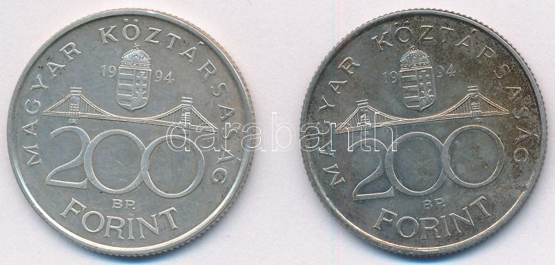 Leírás: 1994. 200Ft Ag "Deák" (2x) T:1- patina