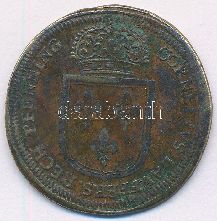 DN (1658-1711) "CORNELIVS LAVFFERS RECH PFENNING / LOVIS XIV ROY DE FR ET DE NAV" sárgaréz számolózseton (6,01g/28mm) T:2-