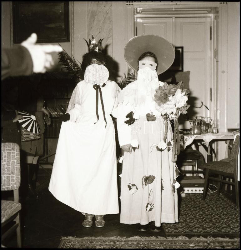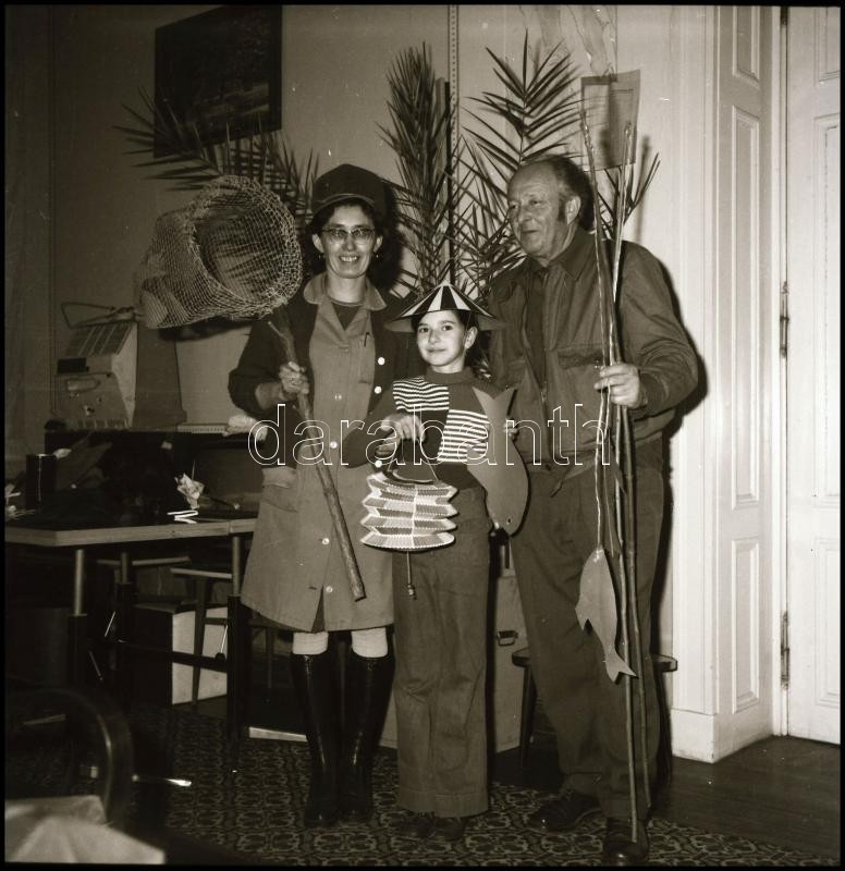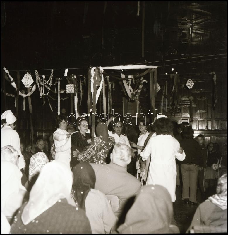 1979 Nagymágocs, Szociális Otthon, nagy riport a lakók farsangi mulatságáról, Demeter Sándor (?-?) szentesi fényképész és fotóriporter hagyatékából 48 db vintage NEGATÍV, a film végén feliratozva, 6x6 cm