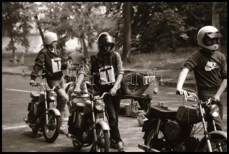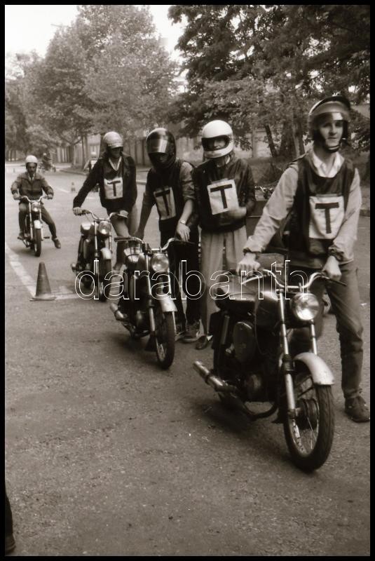 1987 Budapesti autós iskola, ahol a felvételeken főleg motorosok szerepelnek, 14 db vintage NEGATÍV, Magyar Alfréd budapesti fotóművész felvételei, 24x36 mm