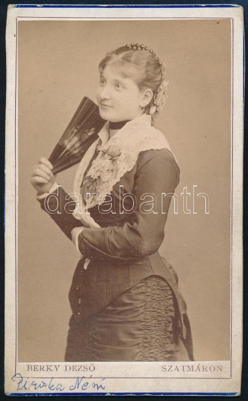 cca 1880 Lány legyezővel, keményhátú fotó Berky Dezső szatmári műtermé... https://www.darabanth.com/hu/393-Gyorsarveres/393.0/Fotomuveszet/Foto~500021/cca-1880-Lany-legyezovel-kemenyhatu-foto-Berky-Dezso-szatmari-mutermebol-10-5C3976-5-cm~II2383345