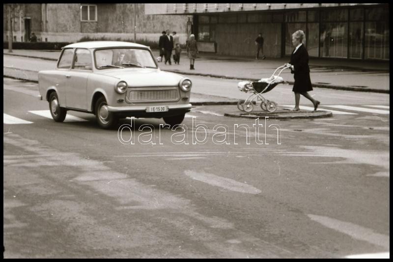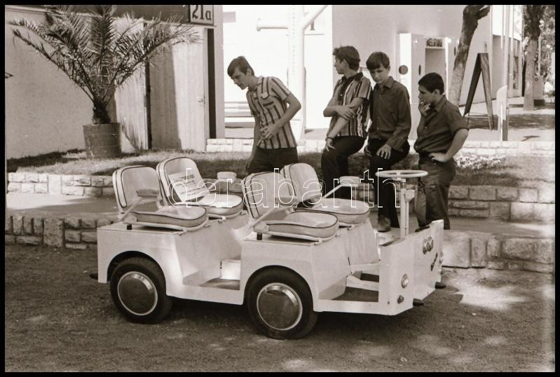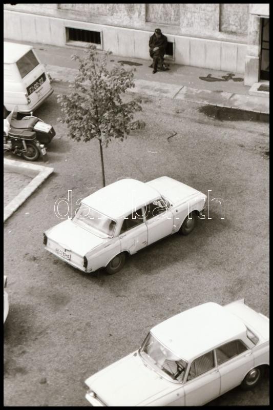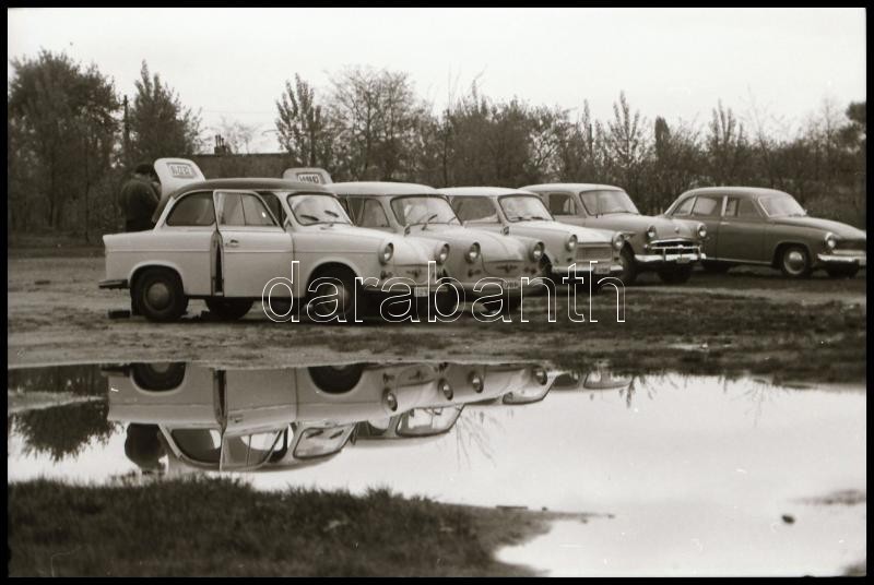 cca 1969 és cca 1985 között készült 23 db vintage NEGATÍV, Magyar Alfréd budapesti fotóművész felvételei különféle autókról, köztük egy nyitott 4 üléses elektromos (?) járműről a tanácsi ipar kiállításáról (a tételben hét negatív más témát ábrázol), 24x36 mm