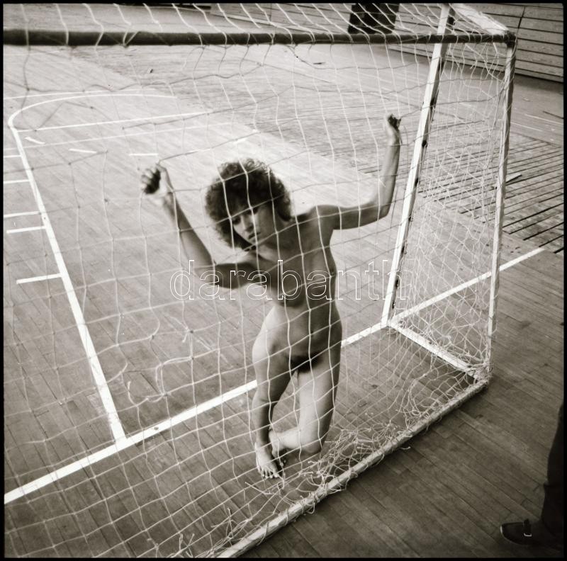 Leírás: cca 1978 A kapus rövid pihenője, Menesdorfer Lajos (1941-2005) budapesti fotóművész hagyatékából, 1 db vintage NEGATÍV, 6x6 cm
