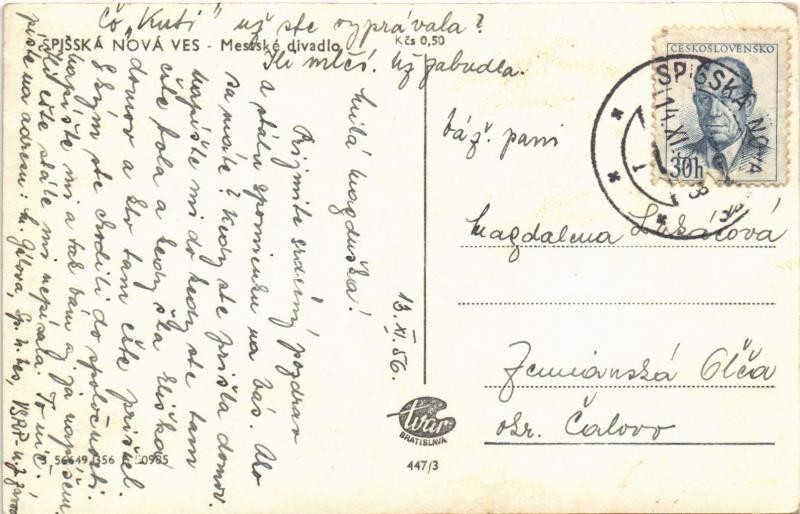 1956 Igló, Zipser Neudorf, Spisská Nová Ves; Mestské divadlo / színház... https://www.darabanth.com/hu/393-Gyorsarveres/393.0/Kepeslapok/Felvidek~1500007/1956-Iglo-Zipser-Neudorf-Spisska-Nova-Ves-Mestske-divadlo-szinhaz-theatre-EK~II2383874