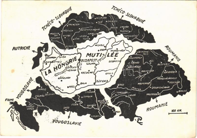 La Hongrie mutilée / A megcsonkított Magyarország. Kiadja a Magyar Nemzeti Szövetség / Hungarian irredenta propaganda, Trianon + "1938 KASSA VISSZATÉRT" So. Stpl (EK)