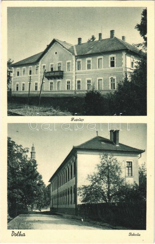Leírás: Dolha, Dovhe; fatelep, iskola. Özv. Goldenberg Dávidné kiadása / sawmill plant, school