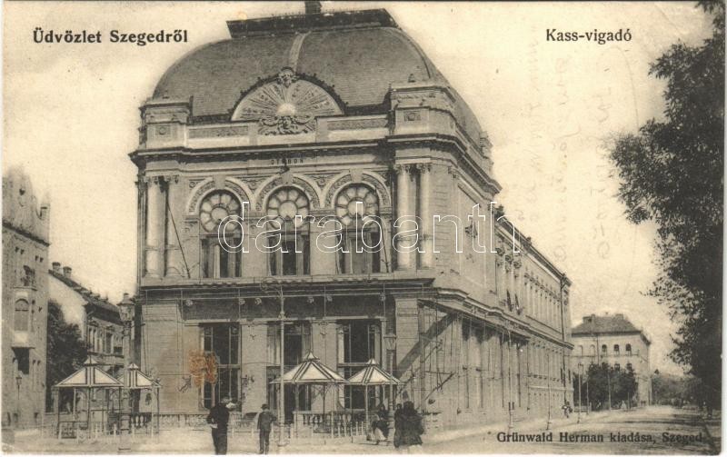 1906 Szeged, Kass vigadó. Grünwald Herman kiadása (EK) https://www.darabanth.com/hu/393-Gyorsarveres/393.0/Kepeslapok/Magyarorszag~1500005/1906-Szeged-Kass-vigado-Grunwald-Herman-kiadasa-EK~II2379388