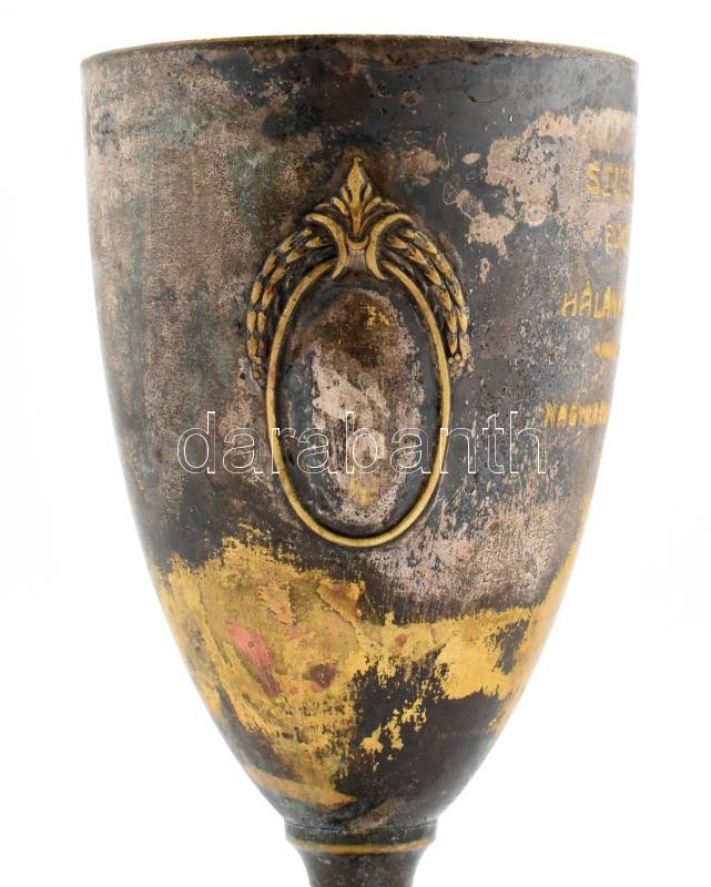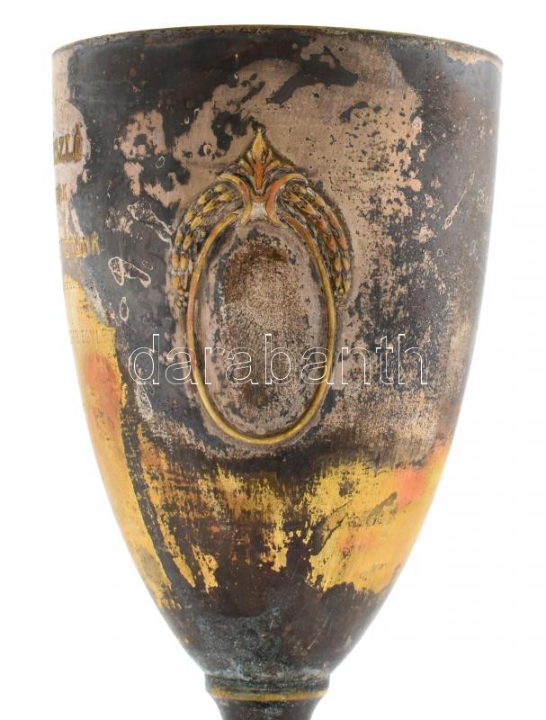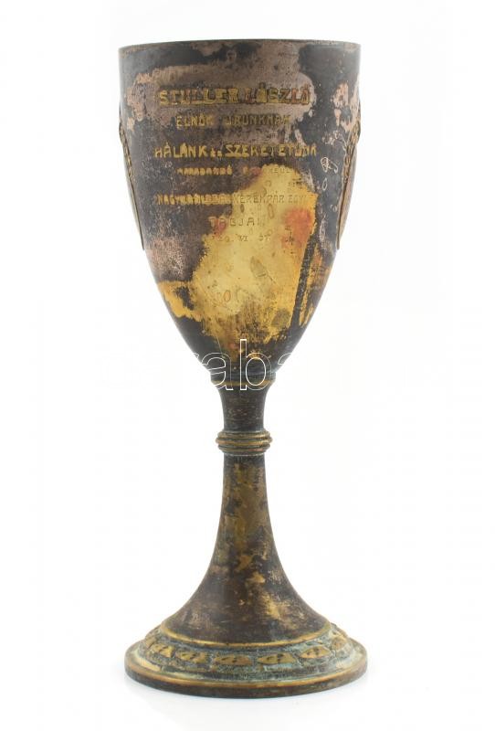 Leírás: 1929 "Stuller László elnök urunknak" Nagykanizsai Kerékpár Egylet serleg, kopottas állapotban, m: 18 cm