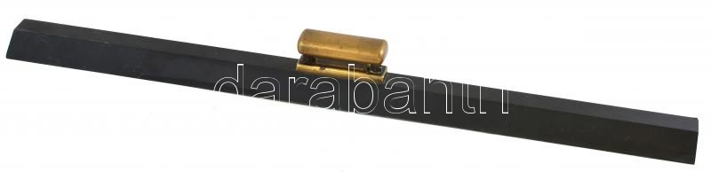 Leírás: Antik acél vonalzó réz fogantyúval, feltehetően bőr vagy más anyag vágásához használatos segédeszköz, apró kopásnyomokkal, h: 55 cm, m: 5,5 cm