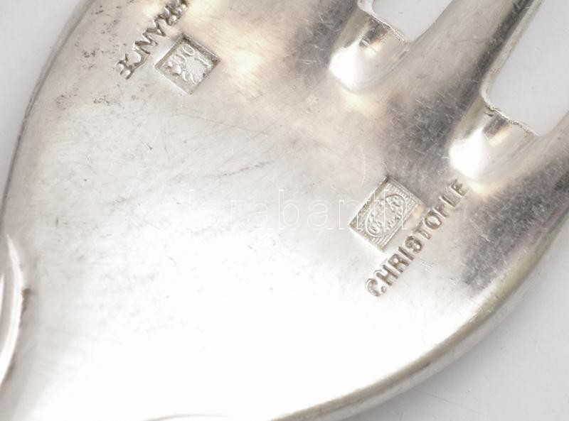 Leírás: Christofle egyszemélyes ezüstözött alpakka evőeszközkészlet, jelzett, jó állapotban, 8 db