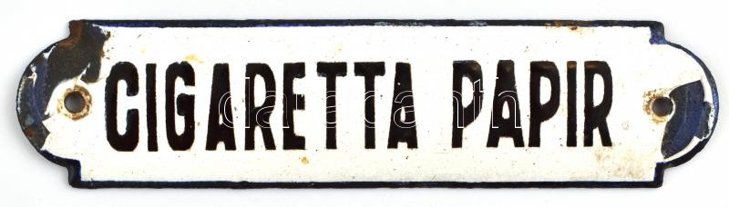 Leírás: Cigaretta papír, szatócsbolti zománcozott fém tábla, sérülésekkel, 12x3 cm