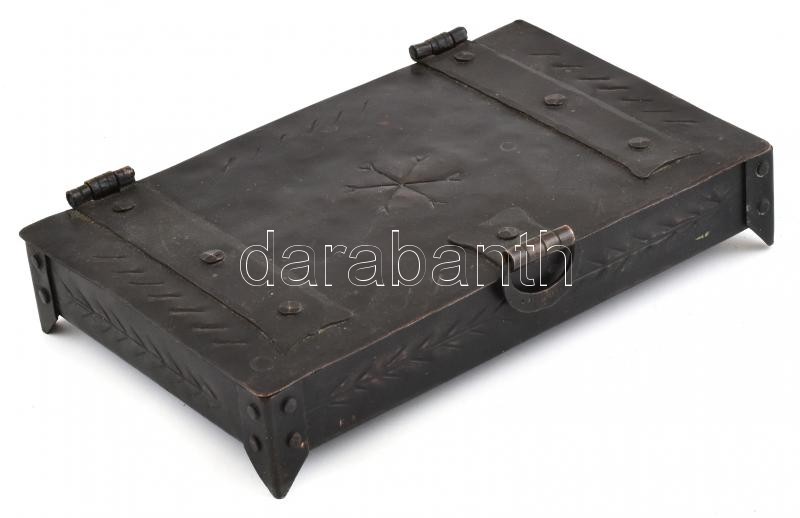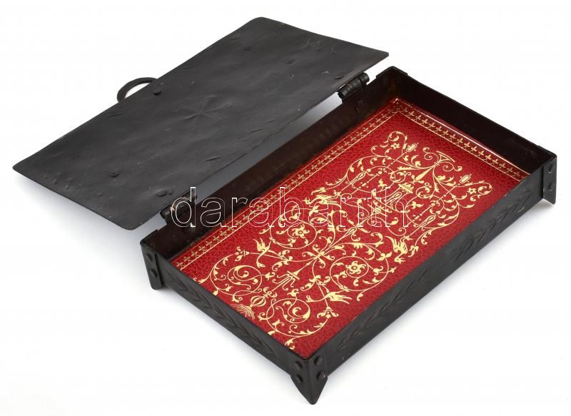 Leírás: Kovácsoltvas kártyatartó doboz, díszes belső résszel, 20x13x3,5 cm