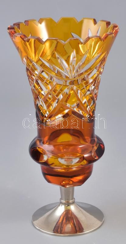Ólomkristály váza fém talppal, metszett, jelzés nélkül, karcos, m: 20,... https://www.darabanth.com/hu/393-Gyorsarveres/393.0/Mutargy-papirregiseg-egyeb/Bolhapiac~500012/Olomkristaly-vaza-fem-talppal-metszett-jelzes-nelkul-karcos-m-20-5-cm~II2379022