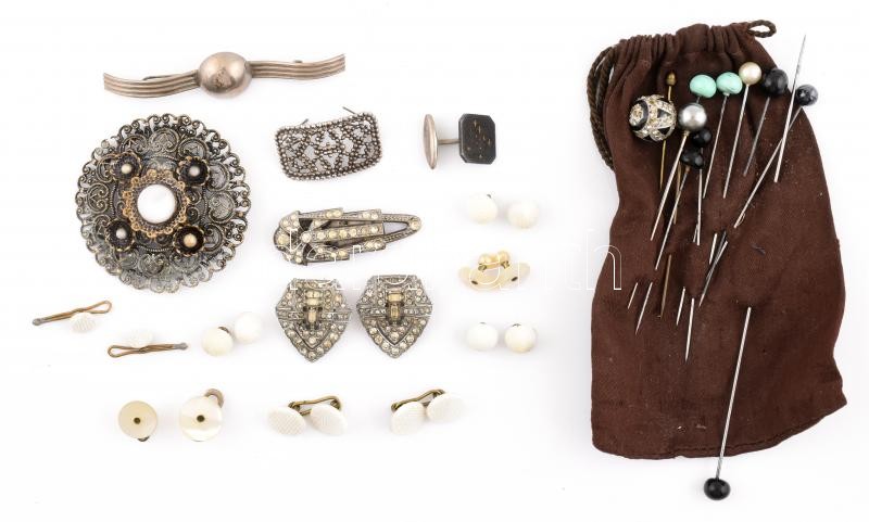 Leírás: Vegyes kalaptű, bross és mandzsettagomb tétel