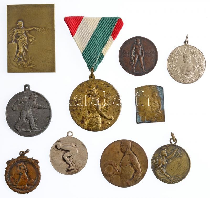 10db-os vegyes sportérem- és plakett tétel, közte Berán Lajos (1882-1943) 1948. "Mens sana in corpore sano (Ép testben ép lélek)" kétoldalas Br érem (30mm) T:vegyes