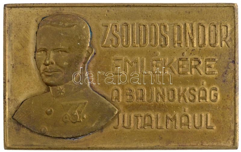 1933. "Zsoldos Andor emlékére - A bajnokság jutalmául" kétoldalas Br emlékplakett a Vívó és Atlétikai Club ügyvezető alelnökének emlékére (56x35mm) T:2