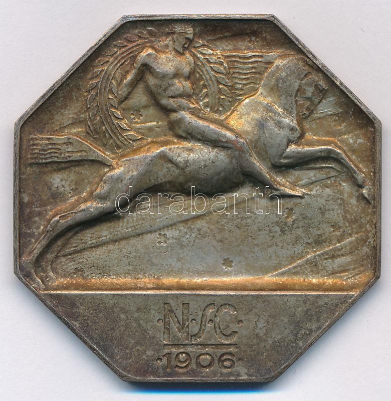 Leírás: ~1920. "NSC (Nemzeti Sport Club) 1906" ezüstözött Br nyolcszögletű lovassport díjérem (46x46mm) T:2,2-