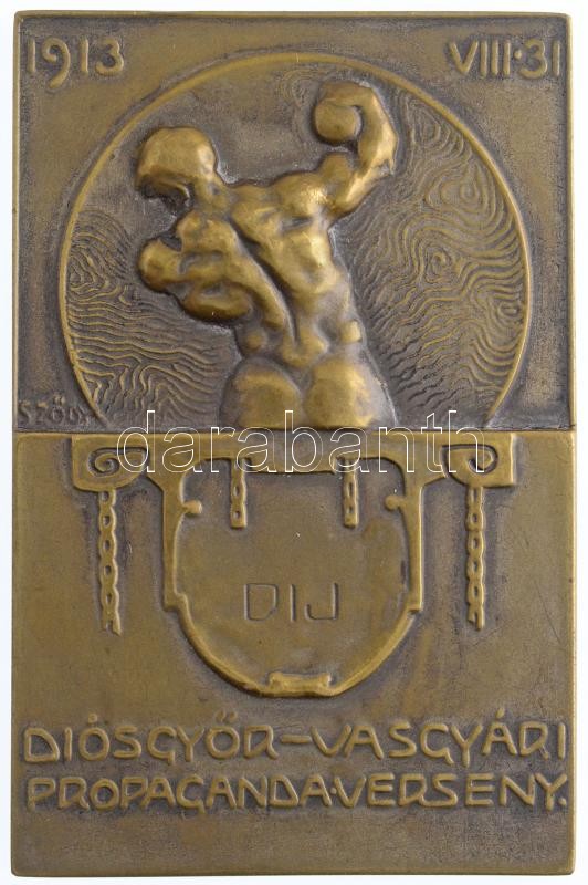 Leírás: Sződy Szilárd (1878-1939) 1913. "1913. VIII. 31. - Diósgyőr-vasgyári Propaganda Verseny" Br díjplakett (46x70mm) T:1-,2