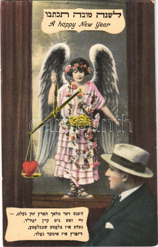 Leírás: Héber újévi üdvözlet angyallal. Judaika / A Happy New Year. Hebrew greeting with angel. Judaica