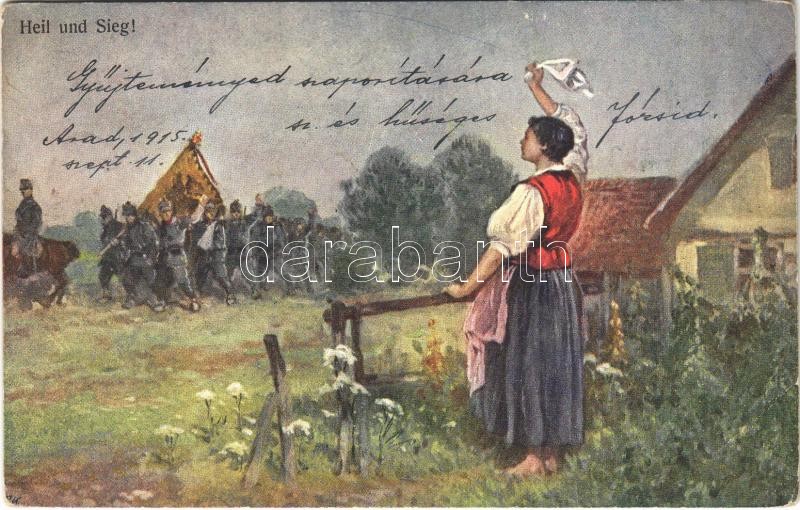 Leírás: 1915 Heil und Sieg! / WWI Austro-Hungarian K.u.K. military art postcard. A.F.W. III/2. 619. (EB)