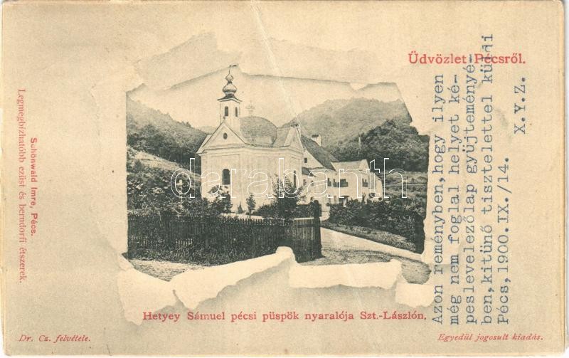 Leírás: 1900 Püspökszentlászló (Hosszúhetény), Hetyey Sámuel pécsi püspök nyaralója Szent-Lászlón. Dr. Cz. felvétele. Schönwald Imre kiadása (fa)