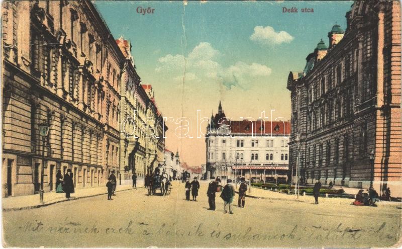 1918 Győr, Deák utca. Vasúti levelezőlapárusítás 7. (fa) https://www.darabanth.com/hu/394-Gyorsarveres/394.0/Kepeslapok/Magyarorszag~1500005/1918-Gyor-Deak-utca-Vasuti-levelezolaparusitas-7-fa~II2388882