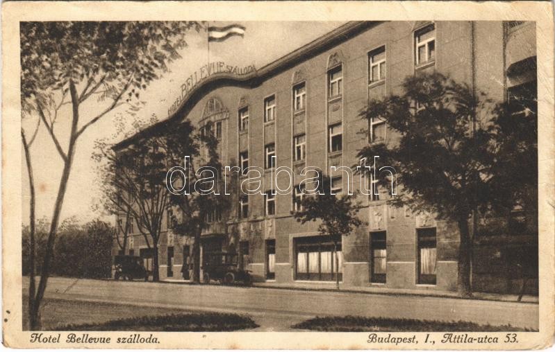 Budapest I. Hotel Bellevue szálloda. Attila utca 53. (Rb) https://www.darabanth.com/hu/394-Gyorsarveres/394.0/Kepeslapok/Magyarorszag~1500005/Budapest-I-Hotel-Bellevue-szalloda-Attila-utca-53-Rb~II2391742
