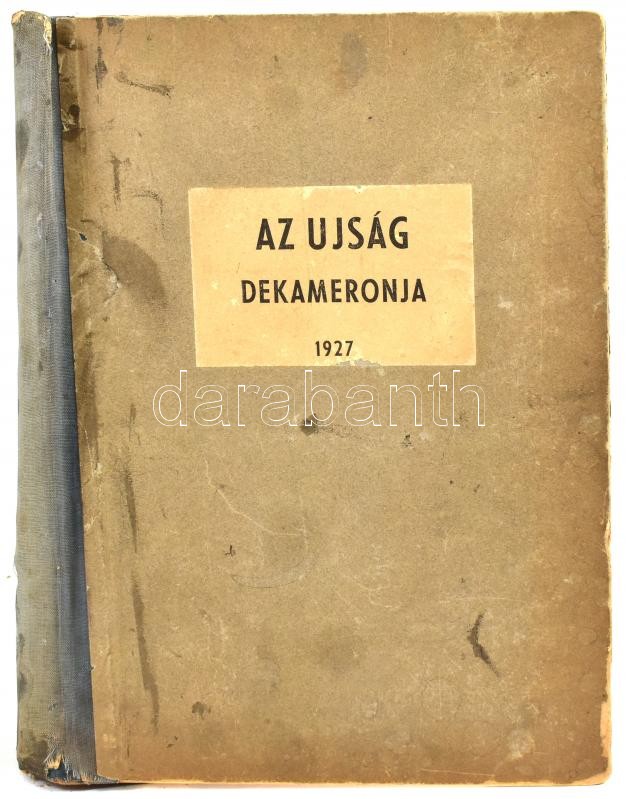 Az Ujság Dekameronja. 100 magyar író 100 magyar elbeszélése az Ujság 25 éves fennállásának ünnepére. Bp, 1927, Az Ujság/Hungária Hírlapnyomda. Félvászon kötésben, viseltes, szakadt borítóval, a gerinctől elvált kötéssel, helyenként szakadt lapokkal.