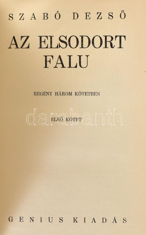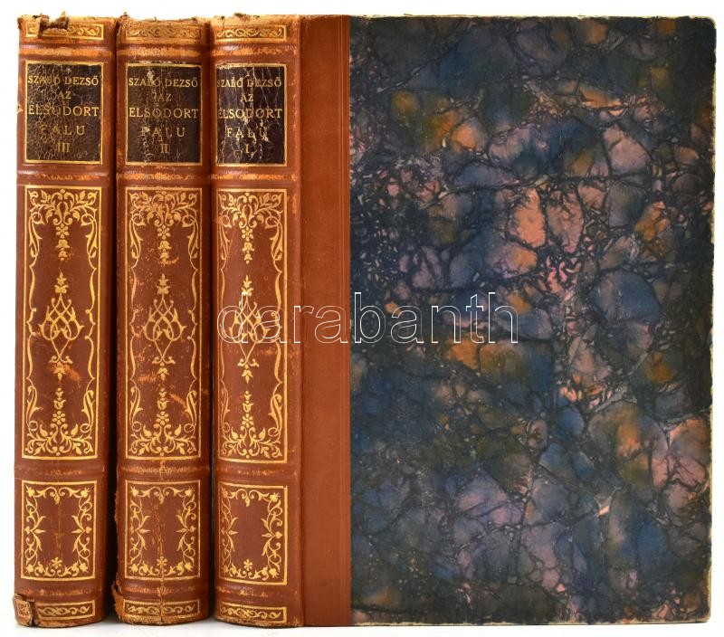 Szabó Dezső: Az elsodort falu I-III. köt. Szabó Dezső művei. Bp.,én.,Genius, 318;328;321 p. Korabeli aranyozott gerincű félbőr-kötésben, aranyozott felső lapélekkel, kopott borítóval, a gerinceken kis sérüléssel.