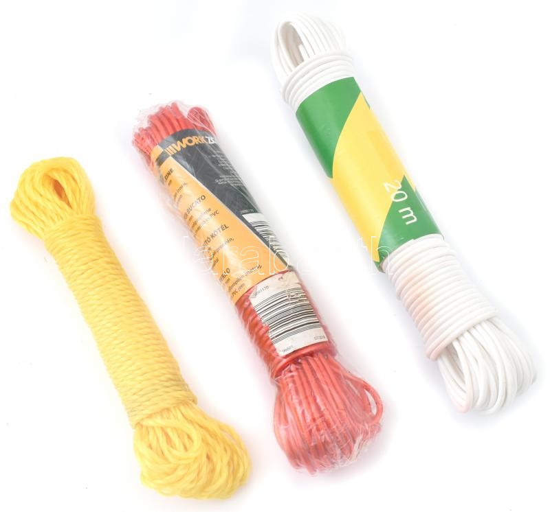 Leírás: 3 db ruhaszárító kötél bontatlan állapotban 8m, 15m, 20 m