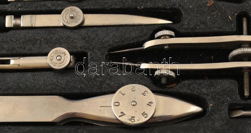 Leírás: Spectrum XI P. körzőkészlet, 18 darabból álló, eredeti műanyag tokjában.