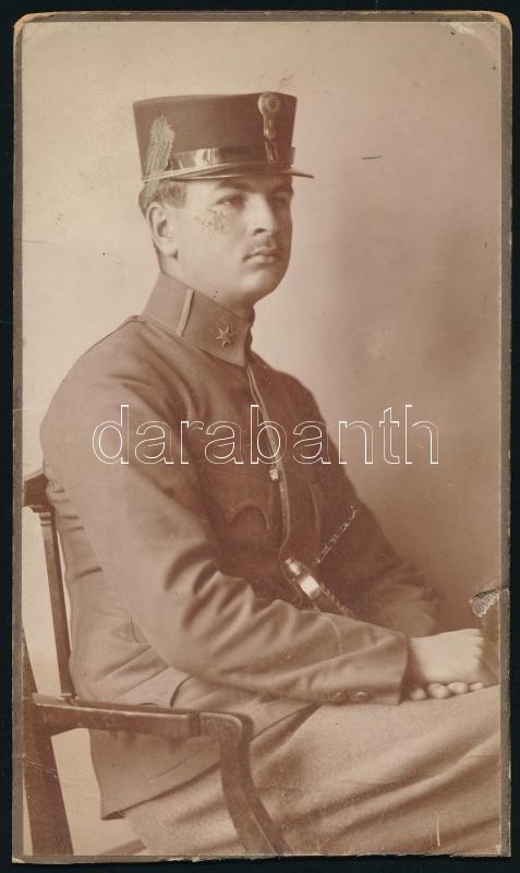 Leírás: 1917 Böjthe Lázár honvéd hadnagy, keményhátú fotó a Joánovics testvérek műterméből, Kolozsvár, vágott karton, 18×11 cm