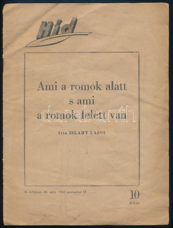 1942 Híd különszáma: Ami a romok alatt s ami a romok felett van, írta Zilahy Lajos. III. évfolyam 28. szám, szerk.: Zilahy Lajos. Kisebb szakadásokkal, 16p