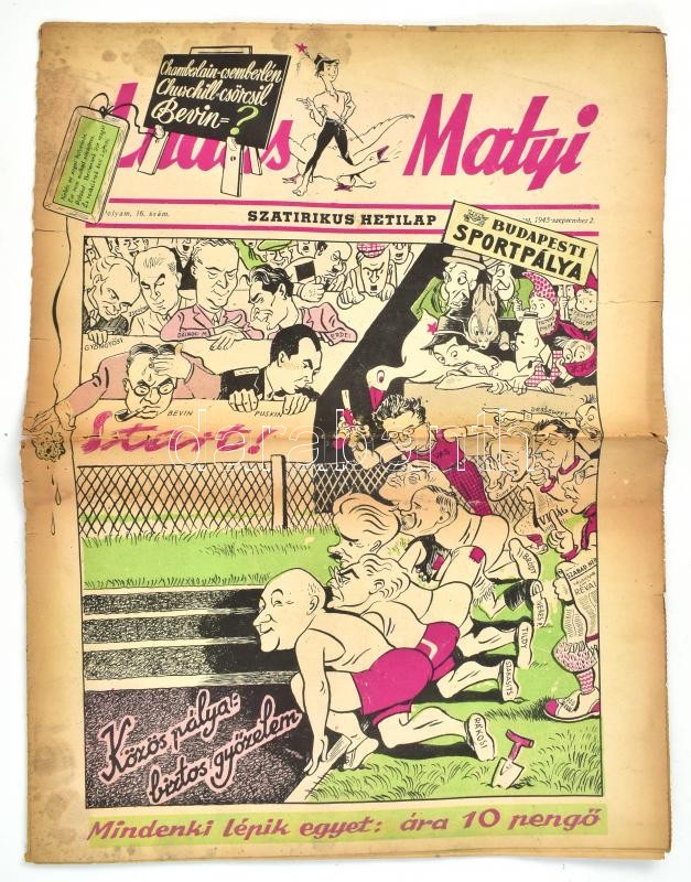 Leírás: 1945 Ludas Matyi. I. évf. 16. sz., 1945. szept. 2., szakadt, foltos, 8 p.