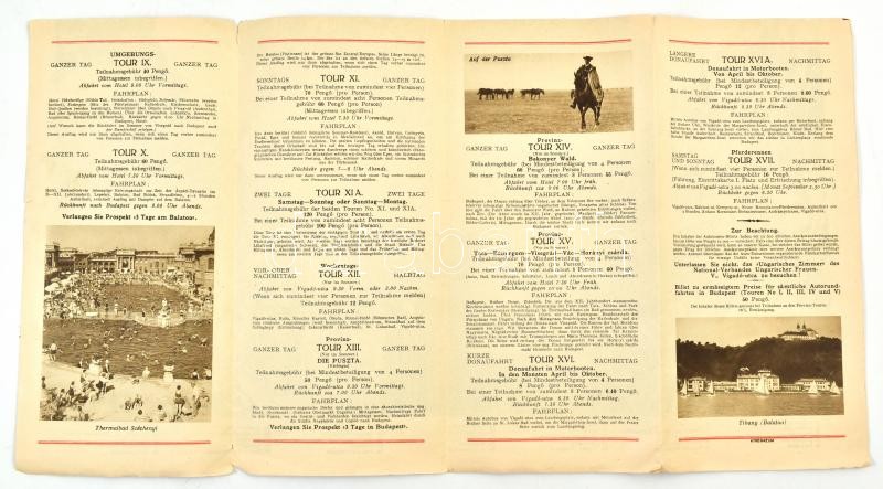 Leírás: cca 1930 Auto Rundfahrten in Budapest und Ungarn. Buszos városnéző túrák. Leporello kissé rojtos szélekkel