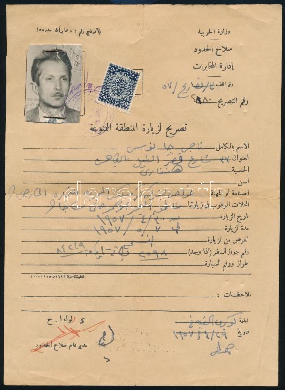 cca 1950 Magyar férfi fényképes egyiptomi igazolványa, okmánybélyeggel... https://www.darabanth.com/hu/394-Gyorsarveres/394.0/Mutargy-papirregiseg-egyeb/Okmanyok~500019/cca-1950-Magyar-ferfi-fenykepes-egyiptomi-igazolvanya-okmanybelyeggel~II2392618