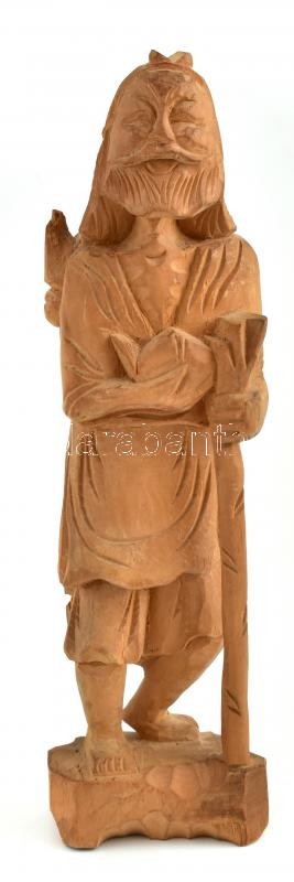 Leírás: Távol-keleti bölcs faragott keményfa szobor, m: 19 cm