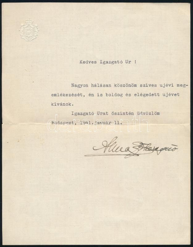 Leírás: 1941 Anna főhercegnő autográf aláírással ellátott levele címeres levélpapíron