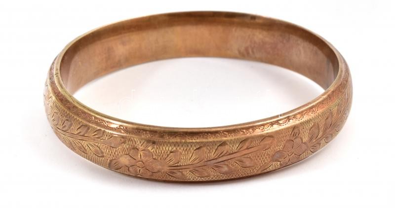 Leírás: Aranyozott ezüst karperec. Vésett, kissé behorpadt. jelzés nélkül 18 g, d: 7,5 cm Díszdobozban