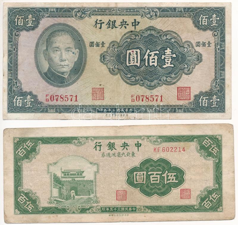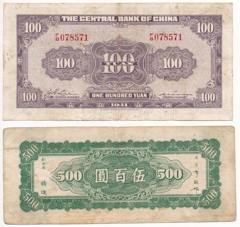 Leírás: Kína 1941. 100Y + 1946. 500Y T:III